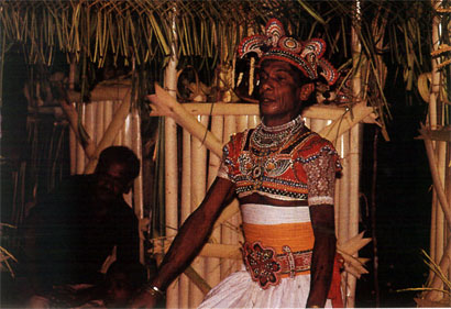 | הדבר קרה לפני כ-15 שנים. בערבו של יום חמישי, בתום ביקור בן שבועיים בסרי לנקה, הגענו לנקודה הדרומית ביותר באי, כפר קטן על שפת האוקיינוס ששמו ווילגמה. במהלך ארוחת הערב הזמין אותנו ויג'אי, בעל הבית שבו התגוררנו, להצטרף אליו למה שהגדיר "טקס ריקודים מעניין", שמתקיים באותו ערב. הוא הסביר שהטקס מתקיים לעתים נדירות ושלדעתו נהנה מאוד. נסענו במכונית דקות אחדות ולאחר מכן, כשנכנסנו לתוך יער סבוך, אמר ויג'אי שמכאן כדאי להמשיך ברגל. התחלנו לצעוד בשביל צר. הלילה היה חם מאוד. מרחוק שמענו קול תופים שהלך והתחזק. כשהתקרבנו אפשר היה לשמוע גם קולות שירה מונוטוניים. טיפסנו על גבעה קטנה, ולפתע נגלה לעינינו מראה שהזכיר סצנה מסרט של קופולה: אור בוהק הציף חצר רחבת ידיים, שבמרכזה עמדה במה מוגבהת ובמרכזה היתה שרועה נערה-אישה. על פניה היתה הבעה של טירוף וזעם, ומסביבה רחשו כחמישים בני אדם. לפני האישה ניצב שולחן ארוך ועליו מקלות קטורת שהפיצו ריח חזק. זרדים וענפים יבשים בערו בסמוך לה, וסביבה פיזזו שני שדוני שאול, לבושים מחלצות ססגוניות וזוהרות ועדויים תכשיטים מרשרשים מכף רגל ועד מצח. כשהגענו למקום הרקדנים היו בעיצומה של אקסטזה מיוזעת. נדמה היה שהם מנסים להעביר מסר כלשהו לנערה ששכבה לפניהם. שני נגנים קשישים, ישובים על הרצפה בישיבה מזרחית, ליוו את הרקדנים. הם היכו בתוף מוארך, שמשני צדיו מתוחות יריעות עור, המונח בין רגליהם. מגרונם של הנגנים והרקדנים בקעו במשך כל הטקס קולות שירה רמים. אדם, ששימש כנראה מנהל הטקס, היה טרוד כל העת בשמירת האש ובהחלפת מקלות הקטורת.