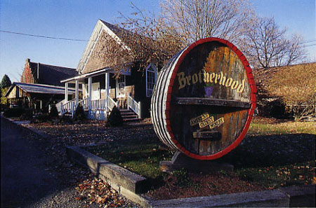 | רבים היקבים שבעמק ההדסון, רובם יקבים משפחתיים קטנים. הוותיק שבהם, ובארצות-הברית כולה, הוא Brotherhood Winery , השוכן כשעה נסיעה מניו-יורק. חוצים את גשר וושינגטון, פונים ל- Palisades Parkway, ביציאה 9West פונים לכביש 87 צפונה. ביציאה 16 פונים לכביש 17West. מכביש זה יוצאים ביציאה 130, פונים לכיוון Washingtonville, ומשם לפי השילוט. הוא נוסד ב-1839 ולא חדל לפעול גם בשנות העשרים של המאה, כשנאסר על פי חוק לייצר ולשווק משקאות אלכוהוליים. היקב עקף את החוק על ידי ייצור יין לצורכי פולחן בכנסייה, ומספרים כי מספר הכמרים באותה תקופה עלה פלאים. הסיור ביקב נמשך כשעה, ובמהלכו יורדים למרתפים קרירים שבהם מאוחסנות חביות היין הענקיות, מקבלים הסברים מרתקים על שיטות ייצור היין, ומסיימים באולם הטעימה. לא מומלץ לנהוג אחרי הביקור. כתובת: Brotherhood Plaza Drive 100, Washingtonville יש כאן גם בית מרקחת ובו התכולה המקורית של בית מרקחת אשר פעל בכפר סמוך במאה ה-19: שורות של צנצנות ובהן תרופות, שידות עץ עם מגרות זעירות לתבלינים ורשימת מחירים של אז. בבית הדפוס ישנן פלטות ברזל מוכנות להדפסה, ודפס מדפיס במכונה ישנה פוסטרים שהמלה "מבוקש" מככבת בהם בגדול. בתחנת מכבי האש יש משאבות קיטור וכרכרות אדומות עם גלגלי עץ ענקיים, ובאורווה – כרכרות יפהפיות מקושטות. בית הספר מ-1805, הנמצא בכפר המוזיאון, מעניין במיוחד: בחדר יחיד ובו אח למדו יחד ילדים מכל הגילאים, כשהגדולים מסייעים לקטנים. המדריכה-מורה מספרת שבית הספר הזה היה פתוח רק בחורף, כי בשאר חודשי השנה עזרו הילדים בעבודות המשק. הילדים היו מגיעים לבית הספר ברגל, לא אחת מרחק של כמה קילומטרים, נושאים בידיהם עצים לאח שבכיתה. הלימודים בבית הספר הסתיימו בגיל 12, ונערות בנות 13 או 14 הפכו לא פעם למורות. המורות שנישאו נאלצו לעזוב את ההוראה, משום שבאותה תקופה סברו כי "חינוך ומשפחה לא הולכים יחד". כתובת: Route 17M 1010, Monroe |