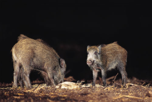 מיד אחריה אני פוגש את החזיר הראשון שלי. אלומת האור תופסת אותו משוטט יחידי על צלע ההר. אני צופה בו במשקפת ורואה אותו זוקף ראש זרבוביתי לכיוון האור. יש משהו נוגע ללב בבדידות הלילית הזאת, אבל מתברר שזו דרכם של חזירים, להלך יחידים בלילות. אחרי החזיר הבודד מתגלה משפחת חזירים שלמה, כולל גורים קטנים ומפוספסים, והיא מרככת מעט את העגמומיות. למרות הציד הנרחב יחסית, החזירים אינם נכחדים דווקא. היום אפשר לראות אותם אפילו באזור ירושלים. יש להם סדר יום די מוקפד ושעות נדידה קבועות ממקום למקום, תכונה המסייעת לציידים להשיגם. אחת הסיבות לשרידותם היא העדר בררנות גסטרונומית. הם אוכלים כמעט הכל, בלוטים, שעורת בר, הופכים סלעים ולועסים ברעבתנות חרקים, עקרבים ונחשים, מחריבים ומלחכים קני נמלים, שולים בחוטמם שלשולים מהאדמה. גופם חזק ושרירי, עמיד לפגעי מזג האוויר. גלילי מספר שיש להם יכולת מופלאה לשרוד אחרי פציעות קשות. "מופלא בעיני לראות חזירים שעלו פעם על מוקש וממשיכים לחיות קטועי רגליים, נקובי רסיסים וקליעים". מעל אוכף ההרים מנצנצים אורות טבריה וקו פנסי החוף של הכנרת. ממול זורחת ההילה של קצרין. אלומת הזרקור המשוטטת בלי הרף לוכדת אינספור פרפרים ועשים. לפני שחוזרים זמנית אל כביש האספלט אנחנו כמעט דורסים זעמן מַטְבֵּעוֹת, נחש שוחר שלום שרובץ על העפר החמים. בניגוד לקרובתו הזיקית, הוא דווקא נבהל מהאור, מתפתל משם והלאה ועושה לחלקנו צמרמורת בגב. על הכביש פוגשים את החיה המאיימת הראשונה. שוטר סיור של משטרת התנועה שקורא לג'יפ לעמוד בצד."למה יש לך זרקור?" הוא שואל (למה לא בעצם?), "מי אמר לך שמותר?". הדרגה השיחה נרגעת ואנחנו נפרדים כידידים.