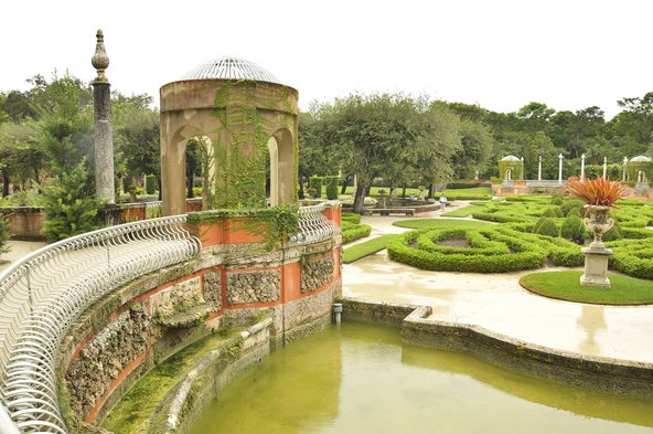 וילה ויזקאיהאחוזה מפוארת בסגנון הרנסאנס האיטלקי שהוקמה ב-1916 כבית החורף של התעשיין ג'יימס דירינג. האחוזה הפכה לאחד האתרים המתוירים בעיר. בווילה יש 34 חדרים המסודרים סביב חצר פנימית יפה. החדרים מרוהטים בריהוט אירופאי עתיק ומאובזרים בפריטי אמנות דקורטיביים מהמאות ה-19-15. הווילה מוקפת בגנים מרהיבים עם בריכות, מזרקות ופסלים. באחוזה התארחו במהלך השנים לא מעט אח"מים, ובהם המלכה אליזבת השניה והאפיפיור יוחנן פאולוס השני שנפגש פה עם הנשיא רייגן ב-1987. כתובת: 3251 South Miami Avenue, אתר אינטרנט .jpg) הגנים המפוארים של וילה ויזקאיה