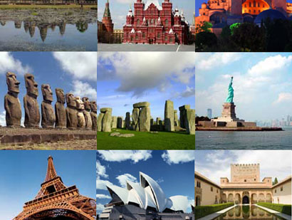 3. אנגקור, קמבודיה משנת 802 ועד 1432 לספירה היתה אנגקור מרכז האימפריה החמרית, שבמרכזה הארמון אנגקור טום. בשיאה, במאות ה־11 וה־12, השתרעה האימפריה על שטח שכלל את רוב שכנותיה: תאילנד, וייטנאם ולאוס. סופה בא עליה כשהצבאות התאיים פלשו לאנגקור הבירה ובזזו את אוצרותיה. אחרי פלישה זו הועברה הבירה החמרית לפנום פן, ולמעט תקופת פריחה קצרה נוספת במאה ה־16 נבלעו המקדשים והארמונות ביער הטרופי ושקעו בתהום השכחה. זו לא היתה שכחה מוחלטת; אבל המערב לא גילה עניין באנגקור. היה זה הבוטנאי הצרפתי הנרי מוהוט, שביקר בקמבודיה ב־1860, אשר הצליח לעורר עניין בחורבות המדהימות. ב־1871 החלו הצרפתים לחקור את האתר. המחקר נפסק ב־1972, כאשר מלחמת האזרחים אילצה את הצרפתים לעזוב את קמבודיה. בעבר היה יער העד האיום העיקרי על המקום. בכל זאת, מי שמבקר שם אינו יכול שלא להתפעם מההרמוניה הוויזואלית הנפלאה בין החורבות ליער. הצורות הטבעיות נמצאות ביחסים סימטריים עם הצורות הארכיטקטוניות של המבנים, ושורות העצים מקבילות לשורות העמודים והפסלים. מעל תקרות אבן אפורות מתנשאת תקרת היער הירוקה. מהו סוד הגדולה של אנגקור? ייתכן כי הוא מצוי בצירוף של הארכיטקטורה, האמנות והתפיסה הקוסמולוגית העולה מהיחסים בין הבניינים.הארכיטקטורה של המקדשים החמריים והעיטורים על הקירות עוצבו על פי סדרה של אמונות מאגיות ודתיות. כשרונם של החמרים היה ביכולתם לבטא בארכיטקטורה שלהם את עולמם השמימי של האלים. מעט תרבויות נתנו לכך ביטוי מוצלח עד כדי כך. מתוך כתבה של יגאל צור