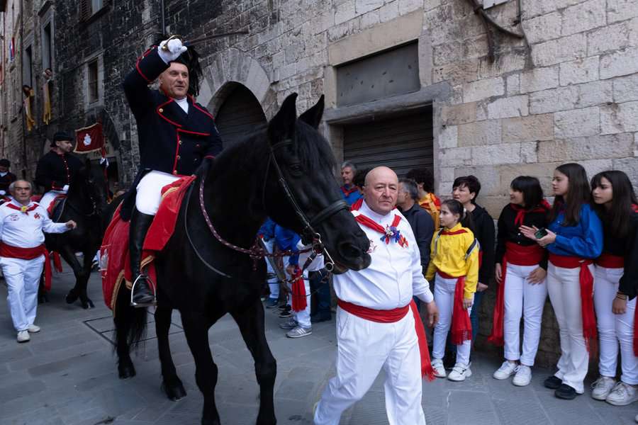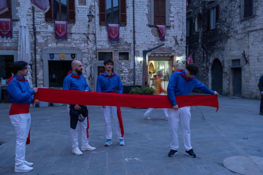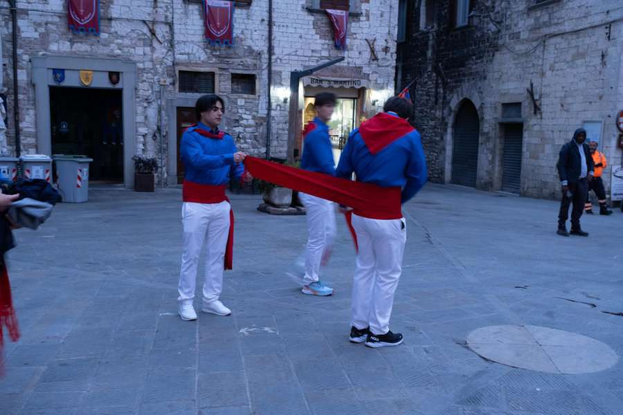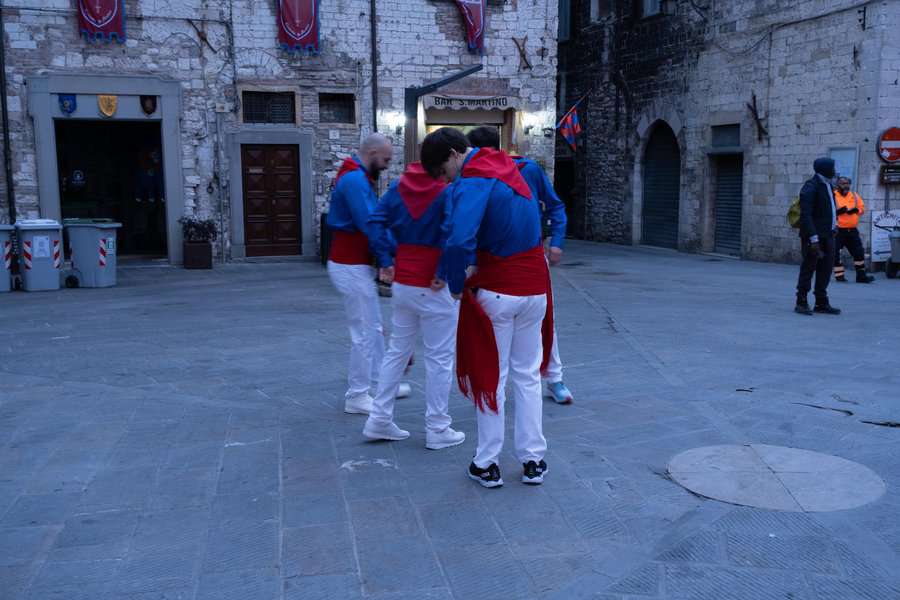 כיוון שתכננתי לחוות אותו באופן יסודי ומראשיתו התייצבנו בשעה 6:30 בבוקר בשערי גוביו. עשרות מתופפים ומאות משתתפים כבר מילאו את העיר היפה והעתיקה הזו. למשמע קריאתו של ראש הטקס יצאה השיירה לדרכה כדי להעיר את תושבי העיר ליום הגדול. אספו בדרך את הקפיטנו מביתו, ותשואות רמות ניסרו את חלל האוויר.