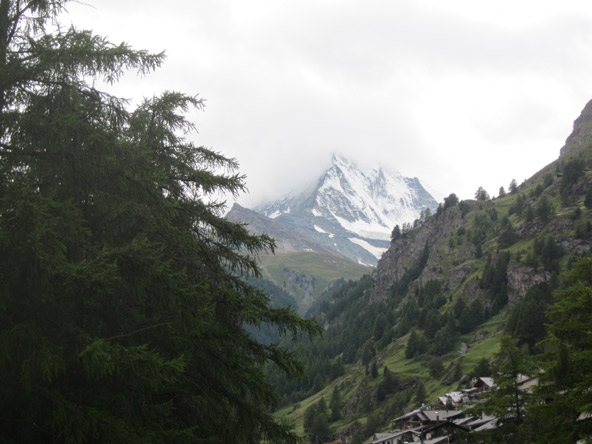 מגורנגרט התכנית המקורית היתה לרדת לתחנה הבאה ברגל, אך מזג האוויר, לצערנו, לא אפשר זאת. את הדרך למטה, אם כן, עשינו ברכבת, עד למלון ריפלברג (Riffelberg), מלון ההרים הוותיק ביותר באלפים השווייצרים, שהוקם כבר ב-1855. גם כאן נהנינו מאוויר הרים ומנוף נהדר, וכן מהחלק הבא של הארוחה – מרק וולזי של יין לבן עם נגיסי גבינה מטוגנים, ומנה עיקרית של בשר כבש (ורביולי גבינה לצמחונים). הקינוח הוגש בתחנת הבאה, ריפלאלפ (Riffelalp), במסעדת ההרים המקסימה Alphütte Chez Freddy, שנמצאת במרחק 10 דקות הליכה מהנות מהתחנה. במסעדה זו הוגש הקינוח – שטרודל תפוחים עם רוטב וניל, גלידה וקצפת. כשיצאנו מהמסעדה השמיים החלו להתבהר, ולכן החלטנו לרדת לעיירה ברגל, במסלול מקסים בין עצי היער, שעובר בחלקו לצד נהר שוצף, כשבדרך ראינו פרחים יפים, סנאים מקפצים וגם מקבצים גדולים של פטריות, כי הגענו מיד אחרי הגשם. והנה עוד משהו לקנא בו – בכל יום ראשון, כשמטיילים רבים מגיעים לאזור ללקט פטריות, מחכים ביער שני יערנים שבודקים את הפטריות שנאספו ומוודאים שאינן רעילות. אין מה לומר, על הכל הם חושבים, השוויצרים. מפת האיזור: לחצו להגדלה