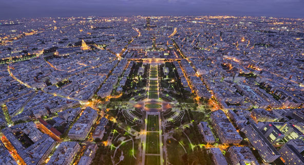 או משקיפים מהקומה העליונה על אורות פריז הפרושים מתחת – המראה מדהים