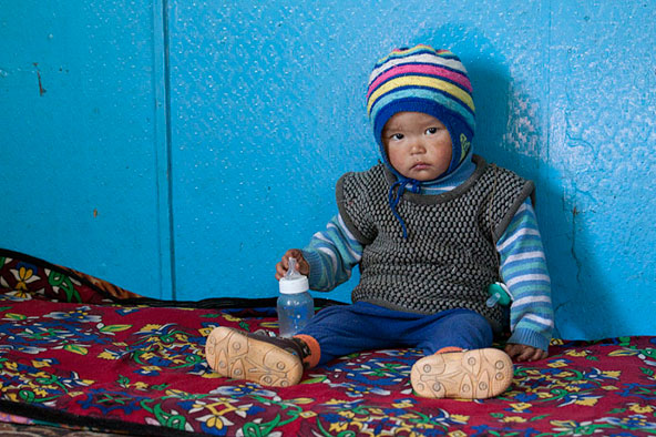 פעוט בעיר אוש. אוש הקור והיובש משאירים את לחיי הילדים סמוקות | צילום: גונן גורן
