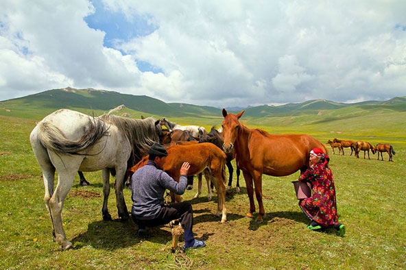 חלב סוסות מותסס, הקומיס, הוא המשקה הלאומי של תושבי הערבה | צילום: גונן גורן
