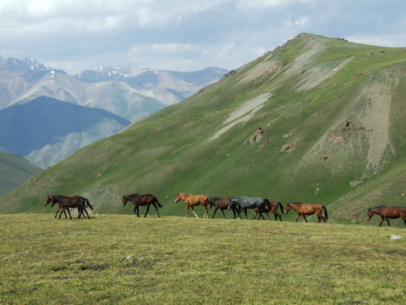עדרי סוסים מנקדים את הנופים המרהיבים של קירגיזסטן | צילום: אשחר יופה