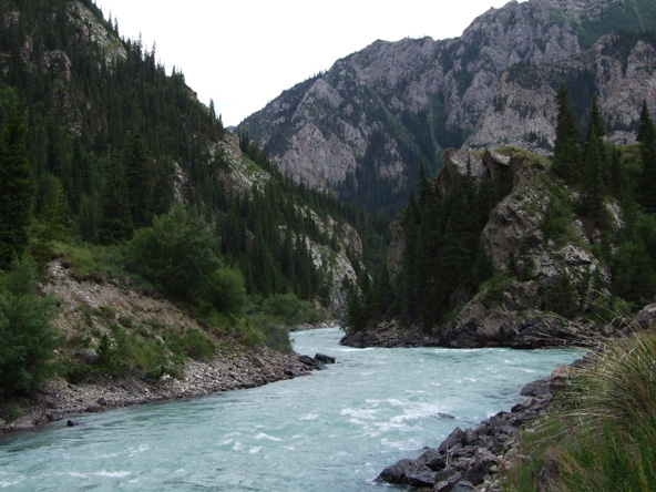 מבישקק עולה בהדרגה מזרחה נתיב עתיק השייך לאלומות דרך המשי ההיסטורית, המחברות בין קיסרות סין העתיקה לאגן הים התיכון. כיום נתיב היסטורי מרתק זה חוזר לחיים ולפעילות מסחרית מואצת בין סין ומדינות מרכז אסיה שנוסדו על חורבות ברית המועצות. עלינו בנתיב העתיק לחופי אגם איסיקול, "האגם החם", שהוא אגם טרמינלי (אגם ללא ניקוז כמו ים המלח), שאורכו 180 ק"מ, רוחבו 60 ק"מ וגובהו 1600 מ' מעל פני הים. האגם האדיר אינו קופא בחורף מכיוון שמימיו מליחים ומחוממים על ידי נביעות מינרלים חמימות.