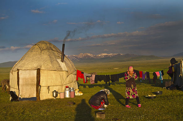 במהלך הטיול בקירגיזסטן כדאי לבלות לפחות לילה אחד במאהל יורטות. התנאים מעט בסיסיים, אך המאמץ משתלם. המקום המועדף עלי ללינת יורטה הוא כמובן אגם סונג קול. אל האגם מובילות כמה דרכי עפר אטרקטיביות, החוצות מעברי הרים גבוהים בנוף פראי ונהדר. המאהל אליו אני תמיד חוזר מתופעל על ידי מקומיים הדואגים לאירוח נפלא. לכל אחד יש מיטה עם מצעים נקיים. ואם נהניתם מהשקיעה, אל תפספסו את הזריחה. נופי האדם והטבע הם סדנה נהדרת לצלמים שביננו.