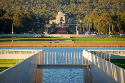 שיט באגם הוא דרך טובה לערוך היכרות בהילוך אוסטרלי, כלומר אטי, עם המונומנטים הגדולים והמרשימים של קנברה: בית הפרלמנט החדש שעל גבעת קפיטל מדרום לאגם, הספרייה הלאומית, שכל ספר שיצא אי פעם לאור על אדמת אוסטרליה נכלל בה על פי חוק, הגלריה הלאומית, בית המשפט העליון, ובניין הפרלמנט הישן הלבן שנחנך בשנת 1927. אבל המקום שבו אפשר למשש את האתוס הפטריוטי האוסטרלי במלוא עוצמתו הוא אתר ההנצחה הכביר (Australian War Memorial), למרגלות הר אינסלי (Mount Ainslie). האתר הוקם לזכרם של יותר ממאה אלף חיילים אוסטרלים שנפלו בשעה שלחמו באירופה לצד בנות הברית בשתי מלחמות העולם, וגם במערכות אחרות שהמדינה שלחה אליהן את מיטב בניה. שדרות אנזק (Anzac Parade) הטקסיות ורבות הרושם, הנמתחות מהאגם ומוליכות אל אתר ההנצחה הן מסימני ההיכר המובהקים של קנברה. הן מרוצפות חצץ אדום (יש האומרים סמל לדם) ומנומרות בעצי אקליפטוס אוסטרלים וניו זילנדים מסוגים שונים. את מה שאירופה היתה רוצה לשכוח האוסטרלים אוהבים לזכור. הם פוקדים את אתר ההנצחה בהמוניהם, תוקעים פרחי בד אדומים בין לוחיות השיש השחור שעליהן חקוקים שמות הנופלים, ועומדים בחרדת קודש בתוך ההיכל רב ההוד, שחלונותיו ארוכים וצבעוניים ותקרתו כיפה המורכבת מפסיפס של שישה מיליון חלקים. את בעיית האבוריג'ינים, לעומת זאת, היו מעדיפים כאן לשכוח. ביקור בגלריה הלאומית ממחיש, בין השורות, את הטרגדיה האבוריג'ינית. במבואה הגדולה מוצג "יער" של מאתיים עמודי קבורה אבוריג'ינים, מעוטרים במוטיבים אופייניים ובצבעוניות נדירה. בחנות הגלריה מציעים למכירה סינרים, מגבות מטבח וכמובן בומרנגים, כולם מקושטים במיטב המסורת האבוריג'ינית. אבל שיטוט באגף הנכבד המוקדש לציירים האוסטרלים "הלבנים", מלמד משהו על מה שקרה פה באמת. הם ציירו בצבעים את ערבות הבוש בימים שעוד היה פה טבע בלתי מופרע, ותיארו ביד אמן את קשיי המתיישבים הלבנים במולדתם החדשה. פה ושם ציירו גם את הילידים. הנה סיפור שמצאנו, כתוב באותיות קטנות, ליד ציור משנת 1834 ששמו "הפיוס", המתאר את ג'ורג' אוגוסטוס רובינסון, פקיד לבן רם דרג, כשהוא מוקף בחבורת אבוריג'ינים שחורים כפחם, ולוחץ את ידו של מנהיגם, טימי שמו. ממשלת בריטניה מינתה את רובינסון בשנות השלושים של המאה ה-19 לנהל משא ומתן עם "הפראים" (כך הם מכונים בהסבר) האחרונים שנותרו בטזמניה, אחרי שהושמדו כמעט כליל בידי החלוצים האוסטרלים. הצייר, בנג'מין דוטרו, תכנן להעניק את הציור לרובינסון כמחווה על כך שהצליח לשכנע את 135 האבוריג'ינים האחרונים לעזוב את מקום מושבם ולהסתלק בדרכי נועם לאי פלינדרס (Flinders). בשנת 1840, כשהשלים דוטרו את הציור ההיסטורי, נותרו בחיים רק כמחצית האבוריג'ינים שהוגלו לפלינדרס. האחרים, בכללם אלה המתוארים בציור, מתו בגלל רעב ותנאים קשים.