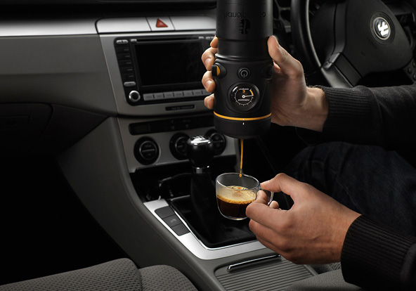מכונה אחרת מתאימה לרכב: מחברים את המכונה למצת של הרכב, מוסיפים מים רגילים, פוד של קפה או קפה טחון, לוחצים על לחצן ההפעלה וממתינים לצפצוף. התוצאה: אספרסו איכותי, שכיף לשתות בדרך ליעד הטיול וגם סתם כך כשתקועים בפקקים בדרך לעבודה.