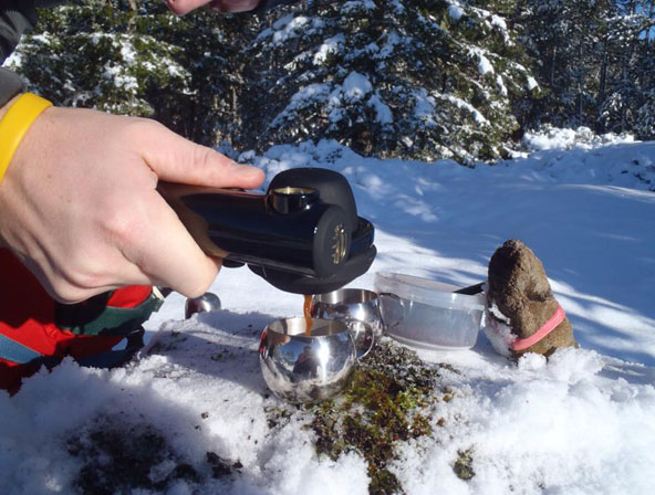 איך זה עובד? יש כמה סוגים של מכונות אספרסו ניידות, שמתאימות למטיילים בשטח, לתרמילאים, לג'יפאים, לאורחים במלון, למעשה לכל מקום וכל מצב שאפשר לעלות על הדעת. מכונת האספרסו ההיברידית נראית כמו משאבה של אופניים והיא עובדת על לחץ של 16 בר, ללא מתח חשמלי. כל מה שצריך לעשות זה לפמפם אותה כדי להגיע ללחץ הרצוי, מוסיפים מים חמים (אפשר לקחת בתרמוס או ממיחם מים), פוד של קפה או קפה טחון ומוזגים את הקפה לכוס.