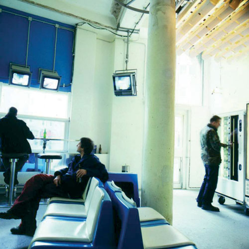 עתיד: הבר האוטומטי ברלין, שעת צהריים. אתם צמאים ומתחשק לכם ללגום בירה צוננת. אתם מגיעים לדלת גדולה וכבדה ברחוב מונץ (Muenzstrasse) ומעבירים כרטיס מגנטי קטן. הדלת המוזרה, רהיט עתיק שהובא בזמנו מבניין משרד החוץ המזרח גרמני, נפתחת ואתם פוסעים פנימה. ברגע זה הפכתם לאנשים מוּכרים. העברת הכרטיס גרמה לכך שנרשמתם בבסיס הנתונים של מערכת המחשב במקום. זה לא הכל. מצלמות קטנות מתעדות אתכם ושולחות את תמונתכם לאתר אינטרנט מיוחד, כך שכל מי שיש לו גישה לאתר יידע שאתם שם. כניסה מרשימה לכל הדעות. זה הזמן למשקה. כל מה שעליכם לעשות זה להקיש בכפתור המתאים ולשלשל מטבע למכונה. זרוע מכנית מגישה לכם את הבירה שבחרתם. כעת תוכלו סוף־סוף להתרווח באחד הכיסאות ולהעיף מבט סביב. במסכים התלויים על הקיר שממול תוכלו לראות את הולכי הרגל ותנועת המכוניות ברחובות הסמוכים. ברקע מתחילה "מכונת הקפה" לנגן מוזיקה קצבית ולהקרין קליפים על אחד המסכים. כשאתם מסיימים את הבירה, אתם מניחים את הבקבוק ברצועה הנעה שלידכם. היא כבר תיקח אותו למקומו. ברוכים הבאים לאוטומאטן (Automaten), הבר האוטומטי של ברלין. האוטומאטן, הפועל זה כשנתיים באזור המיטֶה (Mitte) בברלין, הוא אחד ממקומות הבילוי המקוריים בעיר. המייסדים אינם מרבים להתראיין, והמקום הוא מועדון פרטי השמור לכ־350 חברים שמשלמים שלושים אירו דמי מנוי שנתיים. בימי הקיץ, המנהלים מרפים מעט את החגורה ומאפשרים גם לעוברים ושבים להיכנס פנימה. התוודעתי אל הבר האוטומטי תוך כדי שיטוט אקראי באינטרנט. כך גם הכרתי את גראון שמידט, אחד מיזמי המקום. הוא נתן לי קוד סודי, שאותו מקבלים רק חברי מועדון, וכך | | חלונות הבר מאפשרים לנוכחים להביט על מה שקורה בחוץ, אבל מונעים אפשרות להציץ פנימה. מסכי הטלוויזיה גלויים גם לגולשי אתר האינטרנט של הבר, הפתוח לחברים בלבד |