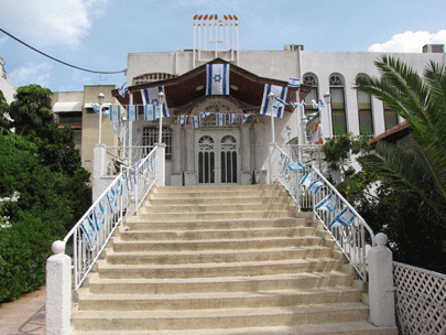 בית הכנסת ע"ש אבהו פרנקו. בסמוך שיחקנו כדורגל עם ילדי משפחת פרנקו