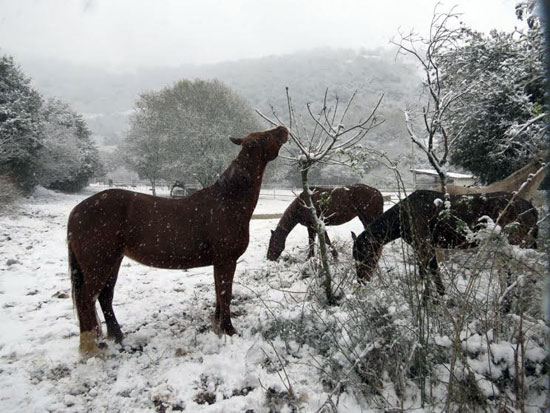 סוסים בחוות הבוקרים המושלגת במרום גולן | צילום: לימור הולץ