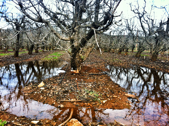 לא רק שלג: המטעים של קיבוץ יפתח הוצפו במים | צילום מאיה אורן