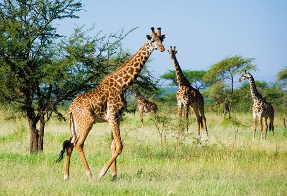 עשב, עשב, עשב; לכל אשר תפנה העין – רק עשב ושמים", כך סיכם ב־1907 את רשמיו מתיישב אירופאי שהגיע לאיזור סרנגטי, שמורת הטבע הגדולה ביותר של טנזניה והזירה הטבעית העשירה והססגונית ביותר של בעלי חיים עלי אדמות. המישורים המשתרעים בסמוך לקו המשווה ומדרום לו הם שהקנו לאיזור את שמו. סרנגטי, בשפה המסאית המדוברת כאן, פירושו "מישורים אינסופיים". ואכן, מישורי העשב משתרעים כאן מאופק עד אופק. אדמה ללא עץ וללא צל. את כל השטח מכסה אפר וולקני, שנפלט בעבר מלועו של אחד מתילי הגעש המתנשאים בשולי המישורים. יש הגורסים כי רדידות שכבת האפר מונעת מעצים לגדול במישורים אלה. לפי גרסה אחרת, מצוי באפר ריכוז גבוה של זרחן, יסוד המשביח את תנאי הקיום של העשבים ומשפר את מצבם בתחרות, והם מצליחים למנוע מהעצים מלצמוח לידם. בשנת 1929 הכריזה הפקידות הקולוניאלית על שטח המשתרע על פני כ־240 קילומטרים רבועים באיזור כמוגן מפני ציד. ב־1940 הגדילה הפקידות את השטח, וב־1951 הוא הוכרז כפארק לאומי. בשל חיכוכים עם המסאים על זכותם לשטחי מרעה עבור הבקר שלהם, צומצמו גבולות הפארק, אך גם כך הוא ענקי וגודלו כמחצית שטחה של ישראל.