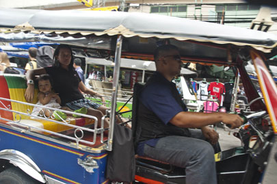 אותו דין נדמה לי חל לגבי הגרפיטי. הערים במקומותינו, עם משטחי הבטון, הקירות והדלתות והכבישים, עמוסות לעייפה בציורים ואיורים גרפיים. חוצות העיר בנגקוק, כך נראה, ריקות. אבל יש להם את הטוק טוק. הנסיעה בתלת אופן הממונע והרועש הזה איננה חוויה מלבבת, בעיקר בגלל רעש המפלט והאוויר המזוהם שבחוץ. אבל זו בהחלט נסיעה מרתקת. הרכב הזה קצת מזכיר לי את סרטי סוף העולם. הנהג של הטוק טוק מקפיד לא לשמור על אף חוק תנועה, ובוודאי לא על כללי הבטיחות. החיתוכים שהוא מבצע על משאיות ומוניות, והמשולשים המהירים שהוא מצייר בכבישים הסואנים של העיר, מזכירים לי משהו מתורת האבולוציה הביולוגית: שורדים אלה המתאימים טוב יותר לסביבתם. ____ |