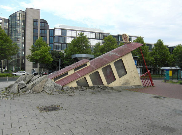 תחנת ווסטפרידהוף, מינכן בדומה לערים גדולות אחרות, גם במינכן, בה יש רשת ענפה ויעילה במיוחד של רכבת תחתית, עוצבו תחנות רכבת תחתית נבחרות על ידי אמנים ומעצבים שהעניקו להן מראה ייחודי. מבין תחנות הרכבת התחתית של מינכן, תחנת ווסטפרידהוף (Westfriedhof) מצטיינת בעיצוב מרשים במיוחד של המעצב אינגו מאואר. בתחנה תלויות 11 מנורות ענק שמאירות אותה בגווני צהוב, אדום וכחול. .jpg) תחנת ווסטפרידהוף במינכן מוארת באורן של 11 מנורות ענקיות תחנת בוקנהיימר ורטה, פרנקפורט לפעמים לא רק התחנות מעוצבות באופן מעורר השראה, יש מקרים שבהם העיצוב המיוחד מתחיל עוד לפני שיורדים למעמקים. קחו לדוגמה את תחנת Bockenheimer Warte בפרנקפורט. אי אפשר שלא לחייך למראה הכניסה לתחנה הזאת, הנראית כאילו קרון רכבת נתקע עמוק באדמה – העיצוב כולל את חלקו של הקרון מבצבץ מהמדרכה ואפילו ערימה של אבנים שכביכול נשברו במהלך האירוע. האדריכל פטר פיננסקי מספר שעיצב את הכניסה לתחנה בהשראת ציוריו הסוריאליסטיים של הצייר הבלגי רנה מגריט. .jpg) אי אפשר להתעלם מהכניסה לתחנת בוקנהיימר ורטה בפרנקפורט