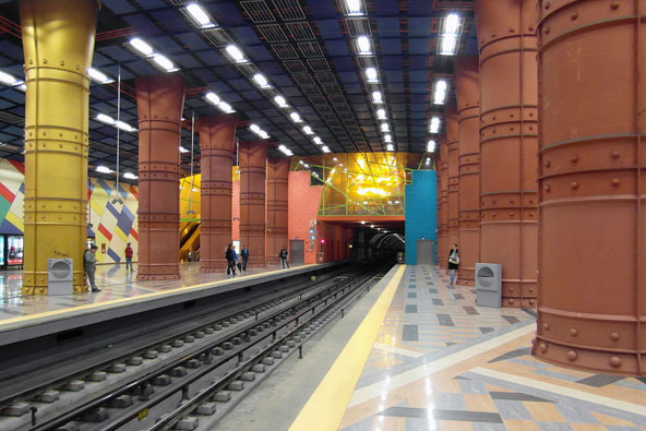תחנות של רכבת תחתית נמצאות אמנם עמוק מתחת לאדמה, אבל הן לא חייבות להיות קודרות ואפלוליות. יש תחנות מהודרות כאולמות נשפים, אחרות מעוצבות במראה עתידני ויש כאלה שנהנות מעיצוב ססגוני להפליא. הנה כמה תחנות מטרו מדהימות במיוחד, שהציפייה לרכבת בכל אחת מהן היא חוויה לא שגרתית ואפילו מלבבת: תחנות מטרו בנאפולי, איטליה מבין ערי איטליה, נאפולי מתגאה בתחנות המטרו היפות ביותר. התחנות בעיר עוצבו בידי אמנים, מעצבים ואדריכלים מובילים, בהם אניש קאפור, אלסנדרו מנדיני וקרים ראשיד. לדעת רבים, תחנת טולדו (Toledo), בעיצובו של אוסקר טוסקטס בלנקה הספרדי, היא התחנה המרשימה מכולן. המוטיב השולט כאן הוא מים ואור, והקירות והתקרה מצופים בפסיפסים בשלל גוונים של כחול, אשר מקנים תחושה של שהות במעמקי האוקיינוס ולא מתחת לאחד מרחובות הקניות המרכזיים בעיר.  בתחנת טולדו בנאפולי המוטיב השולט הוא של מים ואור תחנה מעניינת נוספת בנאפולי היא תחנת האוניברסיטה (Università), שחודשה על ידי המעצב הניו יורקי קרים ראשיד. הרצפה מעוטרת בצורות גרפיות שמקנות תחושה של תלת מימד, ושרטוטים גרפיים צבעוניים מעטרים גם את אזור המדרגות הנעות. קירות התחנה צבועים בוורוד, צהוב וכחול בגוון בוהק, שמאפיין סוכריות עמוסות בצבעי מאכל. החגיגה הצבעונית הזו נמשכת גם ברציפים, אשר קירותיהם נראים כהולוגרמות בהן משייטות צורות מופשטות בסגול.  תחנת האוניברסיטה בנאפולי מצטיינת בצבעים בוהקים וצורות גרפיות