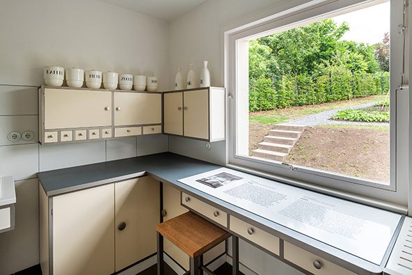 המטבח ב-Haus am Horn | הצילום באדיבות Klassik Stiftung Weimar, photo: Thomas Müller, for Georg Muche: © Bauhaus-Archiv