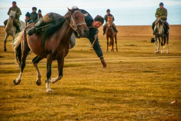 פעם בשנה מתקיים בקירגיזסטן פסטיבל הנוודים הלאומי, שבמרכזו תחרויות ספורט מסורתיות. הפסטיבל כולל ענפי ספורט ייחודיים, כמו אודאריש – היאבקות על גב סוס, כשהמטרה היא להפיל את היריב מהסוס שלו, טיין אגמי – משחק שמטרתו לאסוף מטבעות תוך דהירה על הסוס בזמן הקצר ביותר ומרוץ סוסים מסורתי המכונה אט צוביש. חלק מהמשחקים אינם קלים לצפייה לעין המערבית, כמו קוקבארו, פולו על סוסים, כשאת הכדור מחליפים פגרי עזים כרותות ראש.