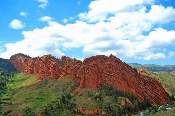 סלעים אדומים ייחודיים בשמורת ג’טי אוגוז בקירגיסטן