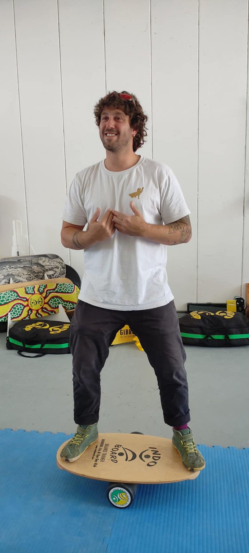 אחרי היצירה מגיע הזמן להזיז את הגוף. במרחק שלוש דקות הליכה מהסטודיו של תרצה נמצא מרכז התנועה של פאגי, הוא דור פגליארי. בתור ילד שגדל בערד, שלא היתה בדיוק עיר האפשרויות הבלתי מוגבלות, דור שחיפש מה לעשות מצא את עצמו הולך על צינורות גז תלויים – ככה הוא קיבל את מנת האקסטרים שלו. רק כשטייל בניו זילנד ונחשף לעולם הבאלאנס וההליכה על סלקליין (כמו הליכה על חבל, אלא שהסלקליין היא רצועה גמישה ופחות מתוחה מהחבל), הוא הבין שתמיד היתה לו משיכה לעולם הזה. כשהוא חזר לארץ הוא הפך ליבואן הרשמי של גיבון – המותג של הסלקליין, וגם התחיל לאמן באינדובורד – משטח איזון עשוי עץ, אותו מניחים על גליל. האינדובורד עוזר לשפר את היציבה, את שיווי המשקל ואת הריכוז, וחוץ מזה – זה כיף. במרכז התנועה שלו תוכלו להתנסות באינדובורד, בהליכה על סלקליין ובפעילויות באלאנס נוספות. גם אם לא תמשיכו לעסוק בזה, שעה בסטודיו שלו היא לא רק זמן איכות משפחתי מהנה ומשעשע. זוהי דרך נהדרת לבנות את הביטחון של הילדים בעצמם וביכולות שלהם, לעזור להם להתבונן, להתמקד ולהירגע.
