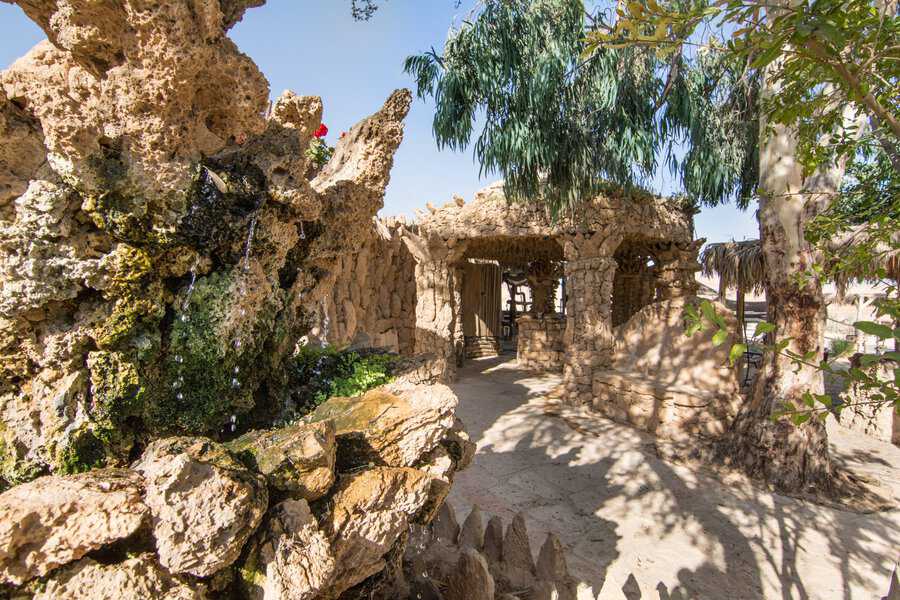 כפר הנוקדים הוא קודם כל מקום לינה ויש בו היצע לכל אחד – מלינה באוהלים שמביאים מהבית (כשאפשר ליהנות מכל שירותי המתחם), דרך לינה משותפת בחאן ממוזג או בסוכות אירוח, ועד לגולת הכותרת – לינה בחדרים בעיצוב מדברי. גם כאן יש כמה אפשרויות – חדרי מטיילים ממוזגים, עם מקלחת ושירותים פרטיים, בעיצוב שובה לב, עם מיטה זוגית, מיטת קומותיים מעץ בעבודת יד, מנורות מלח ועוד. יש גם חדרי מטיילים משודרגים, מרווחים ומפנקים יותר, סוויטות אבן בנות שני חדרים ואפילו אוטובוסים שהוסבו לחדרים מפנקים. על עבודת הבינוי אחראי יהורם רודד, הבעלים, שאחראי גם לכל היצירות שמעטרות את השטח – מזרקות ובריכות אקולוגיות מפוסלות באבן, פינות ישיבה מזמינות, עמדות תצפית עם ערסלים ועוד. בתוך השטח העצום (זה באמת כפר) מטיילים טווסים יפהפיים, ויש גם פינת חי מקסימה עם גמלים, חמורים ועזים, אותם תאכלו להאכיל – חוויה שתשמח את הילדים שלכם עד מאוד.