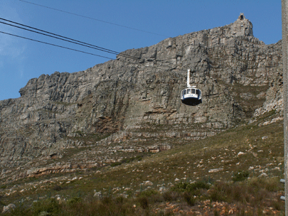 ביום שהחלטתי לעלות להר השולחן מזג האוויר היה מושלם. השמש זרחה, השמים כחולים והרוח שקטה. כיוון שאני מטיילת לבד, החלטתי ללכת על בטוח וקניתי כרטיס הלוך ושוב לרכבל. מהר מאוד גיליתי שמזג האוויר הנאה הביא להר מטיילים רבים. זה אפשר לי חופש לטייל ללא חשש. אחרי כמה דקות של המתנה הגיע סוף סוף תורי לעלות לקרון הרכבל העגול. הקהל כולו נדחק לתפוס מקום בצד הפונה לנוף, אך ברגע שהרכבל יוצא לדרך מחכה לנוסעים הפתעה נחמדה – רצפת הרכבל מסתובבת במהלך כל הדרך לפסגה וכולם זוכים להזדמנות להשקיף על הנוף בכל הכיוונים.