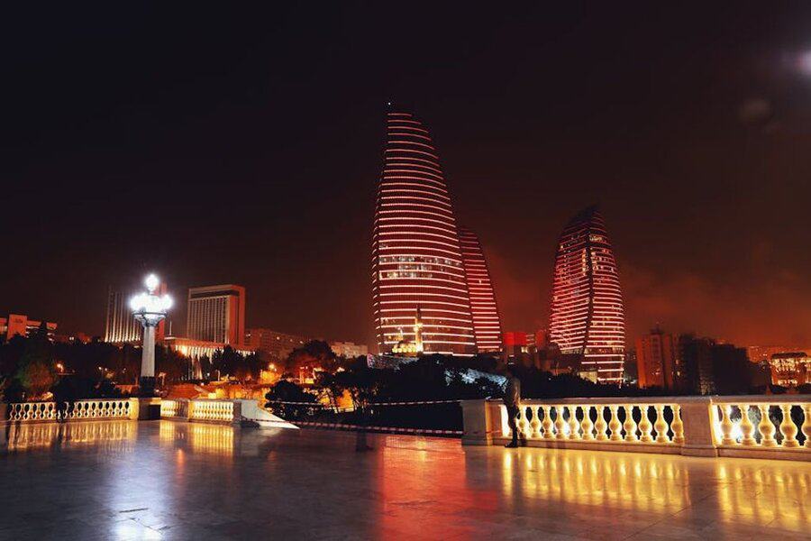 2. מגדלי הלהבה (Flame Towers) – כשבאקו בוערת באור