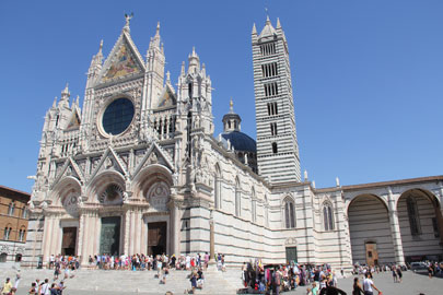 זה התחיל בביקור בקתדרלה המדהימה של סיינה. בכניסה קיבל את פני הרמס טרימגיסטוס, הרמס המשולש בחוכמה, דמות אגדתית שחיה במצרים לפני אלפיים שנה ומי שהיה אחראי להתחלת מדעי האלכימיה, אסטרולוגיה, והידע הנסתר. הרמס הוא חלק מפסיפס השיש של רצפת הקתדרלה – עבודת אמנות שנחשבת לאחת המופלאות באיטליה. הרצפה נבתנה על פי תוכנית אב במשך עשרות שנים, החל מהמאה ה-15, והיא מגלה את האמונות של תקופת הרנסנס וסודותיה. באיטליה למדו אז את מדעי הנסתר בצורה של קבלה, טארות, אסטרולוגיה ואלכימיה. כל המדעים הללו נכללו תחת הכותרת "הרמטיקה" – תורתו של הרמס טרימסגטוס. הופעתו בפתח הקתדרלה מראה על העיסוק של אנשי סיינה בתחומים אלו. בידו האחת מחזיק הרמס מגילה, שאותה הוא נותן לכמה אנשים, ובה נכתב: "קבלו אותיות וחוקים, הו מצרים"; בידו השנייה, מגילה מעט יותר ארוכה הנשענת על שני ספינקסים, ובה נאמר שראשית חוכמה היא לדעת את מעשיו של אלוהים בעולם, והראשון שבהם הוא יצירת האור, שהתגלם בצורת הבן: "אלוהים, היוצר של כל הדברים, ברא אלוהים נראה שני ועשה אותו ראשון ואחד בלבד, שבו הוא היה מרוצה, אהב אותו כבנו שנקרא המילה הקדושה".  הקתדרלה של סיינה. דמויות של נשים פגאניות נראות ברחבי הכנסייה העצומה הנבואה ניתנה לנשים קתדרלות מימי הביניים בנויות בצורת צלב המורכב מהחלקים הבאים: אולם אורך בכניסה הנקרא ספינה (nave), משני צדדיו יש לעיתים אולמות צדדיים הנקראים ספינות צד (aisles). שני אולמות רוחב החוצים את אולם האורך נקראים טרנספט (transept), והמשך הקתדרלה הפונה מזרחה, שבו מזבח הקודש, מחולק לבית המקהלה (choir) והאפסיס (apsis).