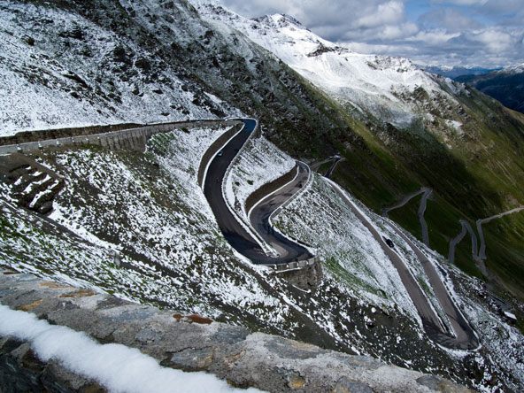 מעבר סטלביו, איטליה גובה: 2,757 מ' מעבר סטלביו (Stelvio Pass) הוא הכביש הסלול הגבוה ביותר בהרי האלפים המזרחיים. הכביש הדרמטי, המתפתל כמו נחש על צלע ההר, ממוקם בצפון איטליה בסמוך לגבול עם שווייץ, בין דרום טירול לחבל לומברדיה. בדומה למעברי אלפים אחרים, בתחילת הדרך ילוו אתכם נופים שופעי צמחייה, אך ככל שתטפסו גבוה, הנוף הופך לסלעי וחשוף. בניגוד לכבישים אחרים ברשימה זו, לאורך הכביש פועלים שירותי תיירות, בהם בתי מלון, מסעדות וחנויות.  מעבר סטלביו מתפתל באינספור פיתולים במעלה ההר
