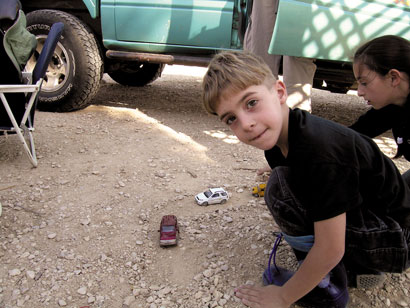 הילדים בקבוצה הם נושא למחקר אנתרופולוגי. ייאמר לזכותם שהם חבורה מגובשת של ילדים בטווח גילים נרחב שאוהבים את הטיולים בג'יפ. מלבד התמזגותם הנהדרת בטבע הם ראויים לצל"ש ולו רק בשל סבלנותם הרבה בנסיעות הארוכות. מלבד זאת הם מעצבנים, קולניים, רעבים בדיוק חמש דקות אחרי שנגמרת ההפסקה וצריכים להתפנות דקה וחצי אחרי. אבל ילדים הם שמחה ועל מנת לרצות גם אותם שכללנו את דרכי ההתמודדות וההצטיידות. כך למשל, אחד הדברים הראשונים שאנחנו דואגים להם בשלב ההכנות הוא להצטייד במשחקים נבחרים – טריוויה לנסיעה, כדור לשטח, מטקות, קלפים וספרים. כאשר ההתמזגות עם הטבע מוצלחת, נכנסים הספרים והמגדירים לפעולה. בשנים האחרונות התפרסמו ספרי טיולים טובים, ומומלץ לבחור ספר המתאים לאזור, לעצור באתרים ולספר את סיפורם. במקביל אפשר להיעזר במגדירי פרחים, עצים וציפורים ובזמן ההפסקות לתת לדור הצעיר לזהות צמחים ובעלי חיים. לצעירים אנחנו אורזים בלוק ציור וצבעים ונותנים להם לצייר את הנוף, ולבני הנוער המעדיפים פעילויות אקטיביות, אנחנו מעמיסים אופניים והם רוכבים עליהם, כשהמסלול מאפשר זאת, כחלק מהשיירה.