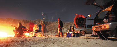הלינה בשטח היא חוויה בעלת עוצמה אדירה. הניתוק, השקט והמרחב חודרים עמוק פנימה. המדורה, הכנת האוכל וההתעסקויות שמסביב מגבשות ומקרבות לבבות, וללינה באוהל יש ערך מוסף של פשטות. כל אלה יחד חוברים לנוסחה מנצחת של טיול מוצלח. גורם הקושי העיקרי בחבורה שלנו הוא לוקה, שאפשר פשוט להגדירו מפונק. הוא לא אוהב לישון באוהל ספרטני באמצע שומקום, ותמיד יעדיף את הדבר הכי קרוב למיטה ומקלחת. עם הזמן גילינו שיש דרך אחת לרכך אותו, וכך בטיול בן יומיים בנגב הבטחתי לו מבעוד מועד מזרן ומקלחת. את הלילה עשינו ב"חאן שיירות" הסמוך לשדה בוקר – אוהל אירוח בסגנון בדואי עם ארוחות, מזרנים ומקלחות לרווחת האורחים ואפשרות לטיולי גמלים, סנפלינג ועוד. בערב ישבנו סביב מדורה קטנה על תה מתוק מתוק ובקלווה, והמארח הבדואי הפליא בנגינה והפליג בסיפורי אלף לילה ולילה.