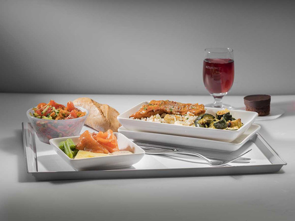 ארוחה עם כוס יין במחלקת פרימיום אקונומי | צילום: אנטולי מיכאלו