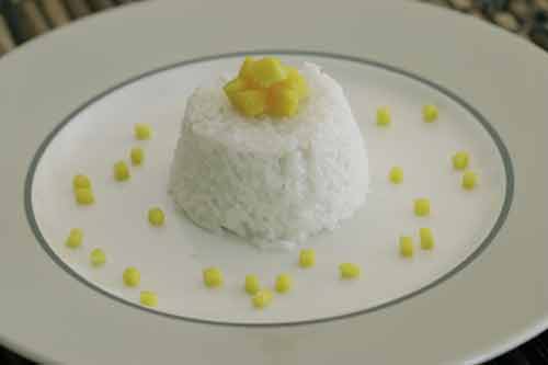 גרם טופו, חתוך לרצועות דקות אופן ההכנה: אורז עם קרם קוקוס ומנגו
