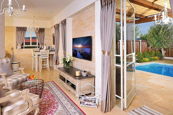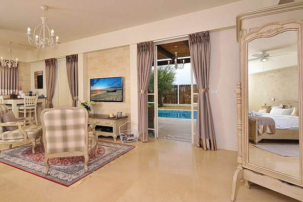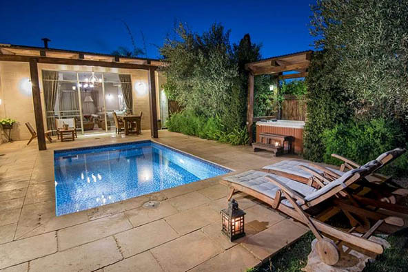 הסוויטה המזרחית השלישית – הסוויטה מציעה שפע של פרטיות, עם גינה צמודה ובה בריכה פרטית מחוממת, ערסלים וריהוט גן.