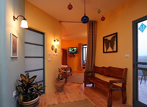 | במרפסת ניצבת אמבטיית זרמים (ג'קוזי) גדולה תחת כיפת השמים ומדרגות מובילות לגג פרטי עם פינת שנטי שצופה אל הנוף מראש הנקרה ועד למירון .לגולשי מסע אחר מגיעה במקום זה הטבה מיוחדת – בקשו אותה! |