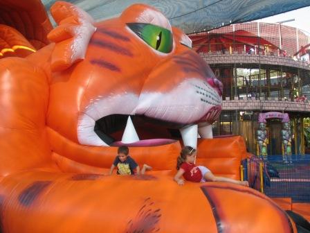 | עולם הקטנטנים המשחקייה ממוקמת בתוך מבנה בא-לגן. מערכות המיזוג והחימום של המבנה פועלות כל השנה ומאפשרות מפלט מתנאי מזג האוויר השונים. 1. חדר פעוטות – מתחם לפעוטות הזקוקים לסביבה שקטה ונפרדת, חדר זה כולל מגוון משחקים לתינוקות וקצת יותר עד גיל 3. 2. חדר ג'מבורי – מגוון רב על שטח גדול של מזרונים בצורות שונות, החדר מיועד לילדים עד גיל 8, בחדר זה יכולים הילדים ליצור לעצמם (תוך הוצאת מרץ רב) עולם כפי שהיו רוצים שיהיה. 3. בריכת הכדורים – משחק מהנה וחוויתי באמבטיית כדורי פלסטיק. הבריכה נועדה לילדים עד גיל 6. 4. חדר לגו – מבחר של סוגי לגו שגדלים שונים ובכמות שלא תיגמר, במרכז החדר אמבטיה של לגו ומסביב שולחנות עבודה, החדר מיועד לעד גיל 8. 5. השף הקטן – מי יודע אולי יום אחד נהנה אנו ההורים מהכשאון שנבט בחדר זה. בחדר יכולים הקטנטנים לנהל בעצמם מטבח ולהכין (שוב לנו ההורים) כוס קפה וארוחת בוקר. החדר מיועד לילדים עד גיל 6. 6. חדר מחשבי קומפי – משחק מחשב אשר יוצרו במיוחד לילדים הקטנים, המשחק בנוי מכמה רמות משחק המאפשרות התאמה לגיל הילד, משחקי המחשב ניבנו על תפאורה של מכוניות קטנות שהילדים יושבים בהם. הכניסה לחדר זה עד גיל 5 . בנוסף ובצמוד למשחקייה מוצבים שולחנות הוקי אוויר ושולחנות כדורגל לחוויה/ טורניר משפחתי. השולחנות פתוחים לכל הגילאים. |