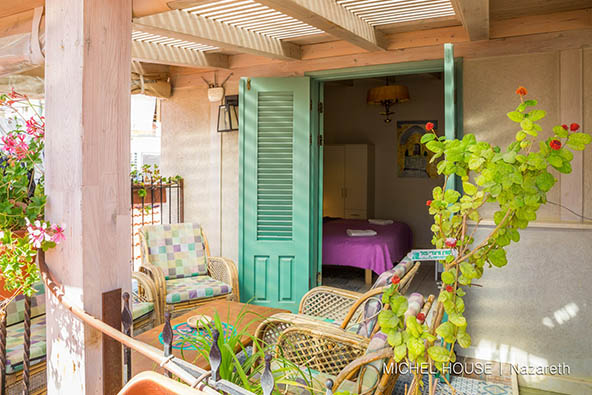 בבית ההארחה יש שמונה חדרים לצד חללים משותפים מזמינים, הכוללים מרפסות הצופות לנוף ופטיו מטופח עם פינות ישיבה ועציצים פורחים. כל חדר בית ההארחה שונה ממשנהו, אבל בכולם יש כל מה שצריך אחרי יום של טיולים בנצרת ובגליל התחתון: מיזוג אוויר, טלוויזיה עם ערוצי כבלים ולוויין, חדר רחצה פרטי, מקרר ואינטרנט אלחוטי. החדרים, בגדלים משתנים, מתאימים ליחידים, לזוגות ולמשפחות. בחלק מהחדרים המשפחתיים יש מיטות קומתיים ובאחרים מיטות פוטון. לכל חדר יש מאפיינים ייחודיים – בחלקם יש מרפסת המשקיפה לעיר העתיקה, באחרים יש תקרות עץ או קירות אבן חשופים, ויש גם חדרים עם ספרייה. הדלתות צבעוניות והמצעים הססגוניים תורמים למראה הנעים והאסתטי. במחיר הלינה כלולה ארוחת בוקר עשירה ואותנטית עם מיטב המטעמים של המטבח הנצרתי. האירוח חם, אדיב וביתי.