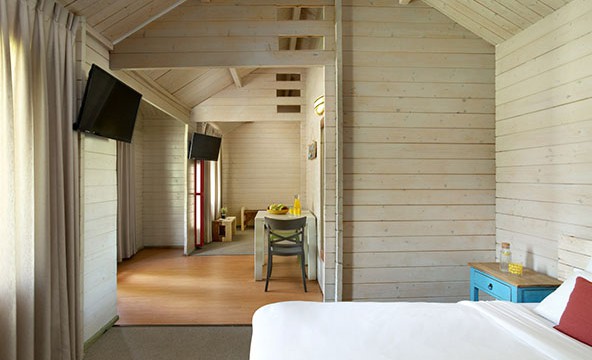 בכפר הנופש 72 בקתות עץ משפחתיות מרווחות המתאימות לאירוח של עד זוג + שלושה ילדים. כל הבקתות ממוזגות ומאובזרות בג'קוזי, מיקרוגל, מיני בר וערכת שתייה חמה.