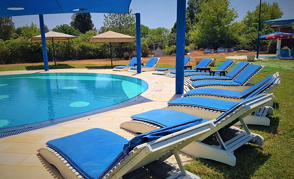 בין המדשאות הרחבות של כפר הנופש יש מתקני שעשועי לילדים ומגרשי ספורט, ובהם מגרש כדורגל וכדורעף. בעונה פועלת בכפר הנופש בריכת שחייה גדולה אשר סביבה מיטות שיזוף ושמשיות. לצד הבריכה יש בריכת פעוטות מוצלת.