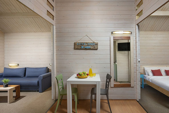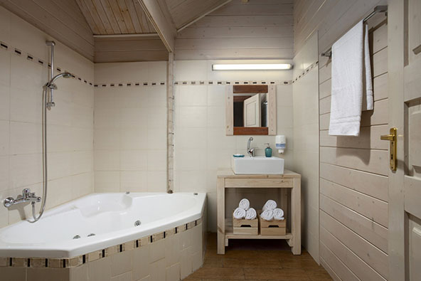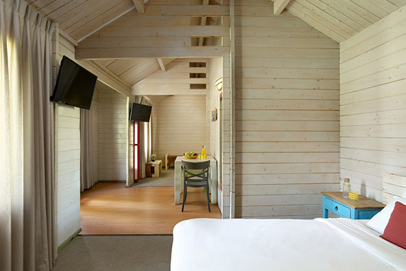 בכפר הנופש 72 בקתות עץ משפחתיות מרווחות המתאימות לאירוח של עד זוג + שלושה ילדים. כל הבקתות ממוזגות ומאובזרות בג'קוזי, מיקרוגל, מיני בר וערכת שתייה חמה.