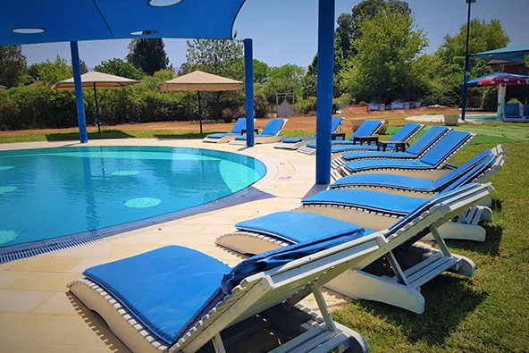 בין המדשאות הרחבות של כפר הנופש יש מתקני שעשועי לילדים ומגרשי ספורט, ובהם מגרש כדורגל וכדורעף. בעונה פועלת בכפר הנופש בריכת שחייה גדולה אשר סביבה מיטות שיזוף ושמשיות. לצד הבריכה יש בריכת פעוטות מוצלת.
