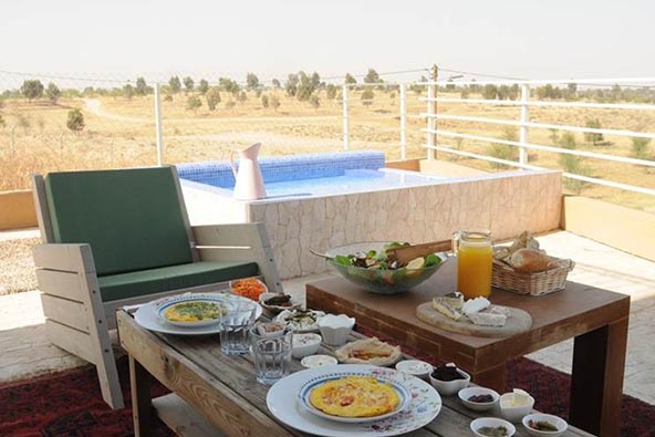 ארוחות הבוקר המוגשות במקום מושקעות ועשירות, כמו כן ארוחת ערב מגוונת בניחוח מדברי. בהזמנה מראש בלבד.