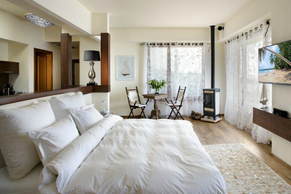 ארבע הסוויטות של פנחס וגסטון דומות באופן יחסי בעיצוב אך שונות בארגון, כשהמכנה המשותף הוא שהפאר נוכח גם כאן. הסוויטות – שלוש מתוכן בקומה העליונה ואחת בקומה התחתונה – מחוברות ביניהן בגרם מדרגות ספירלי. הן פונות אל הים וכוללות מרפסות עץ המשקיפות לכל היופי הזה. חוף הים נמצא במרחק של כ-50 מטרים ומציע תפאורה פראית יחסית.