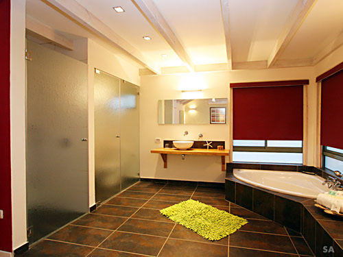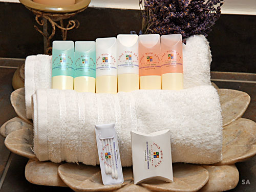 | והפינוק גם מגיע למקלחת: מגבות רכות ומגוון של סבונים ושמפו ריחניים. |