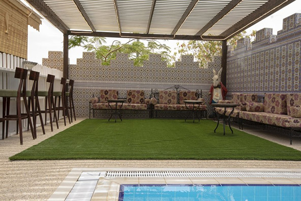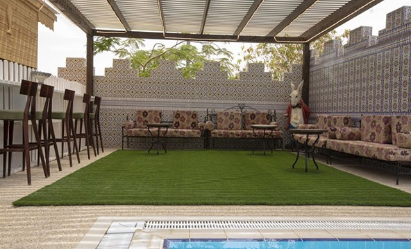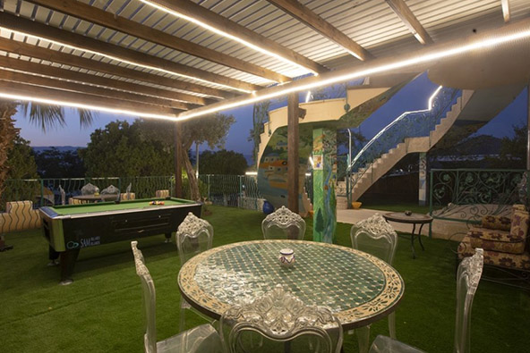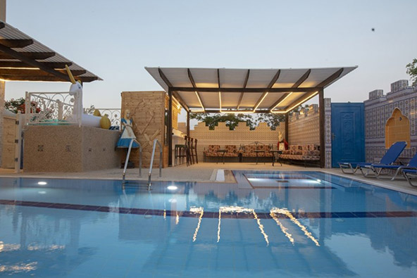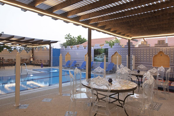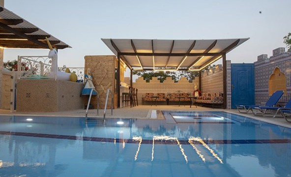 חצר הווילה היא פינוק בפני עצמו. יש בה בריכת שחיה גדולה ויפה, כזו שמזמינה להתרעננות מהחום האופייני של אזור ים המלח, אליה צמוד ג'קוזי ספא מפנק. מסביב יש עוד המון אטרקציות – פינות ישיבה ומיטות שיזוף, שולחן פינג פונג ושולחן סנוקר,  טלוויזיה, פינת ברביקיו מאובזרת עם גריל גז ומטבח חיצוני עם מקרר – כך שאין סיבה ממשית לעזוב את החצר שיש בה הכל.