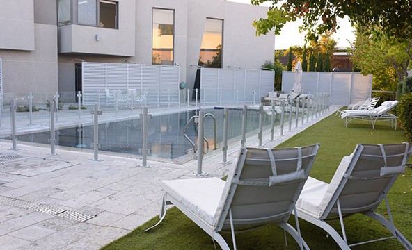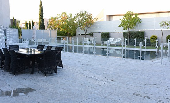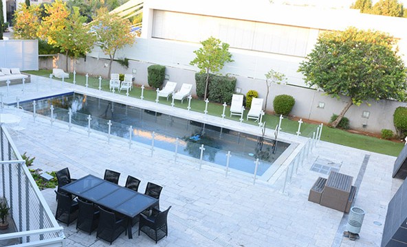בחצר הווילה יש בריכה ענקית, מגודרת בזכוכית, עם ג'קוזי פנימי וסביבה פזורות מיטות שיזוף ופינות ישיבה. אם תרצו לבשל ולאכול בחוץ, תגלו פינת ברביקיו גדולה עם כל הכלים הנדרשים ומאחוריה עמדה להכנת אוכל עם מקרר וכיור. אחרי הבילוי בחצר אפשר להתפנק בסאונה יבשה ורטובה או לרדת לקומת המרתף, שם יש בר ושולחן סנוקר.